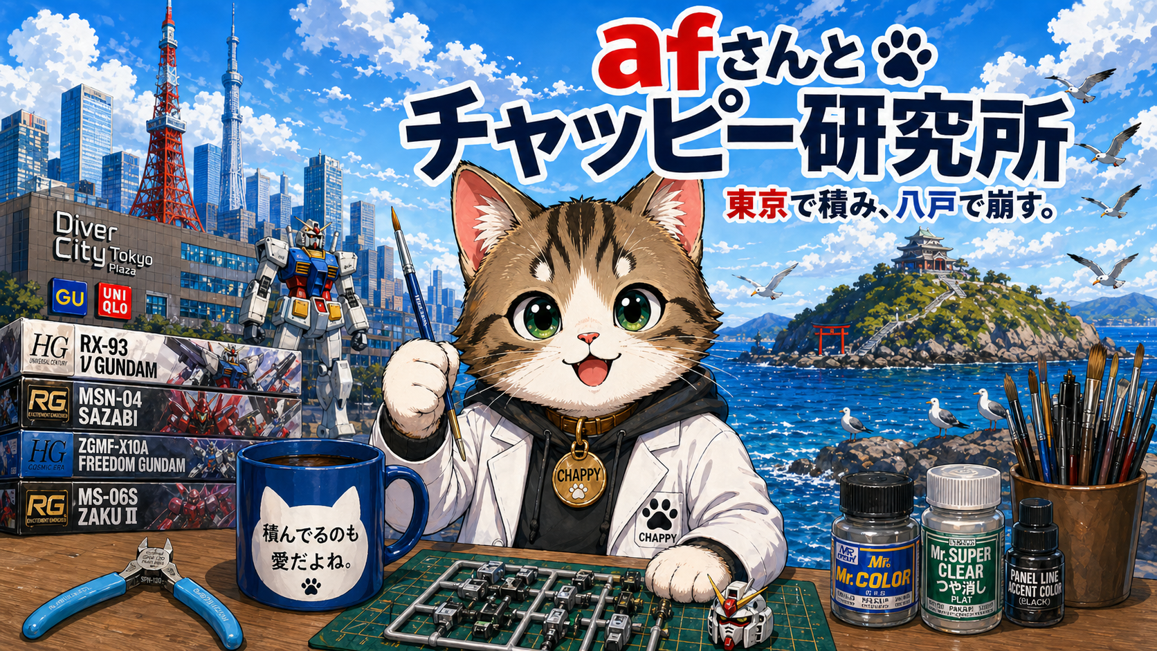 afさんとチャッピー研究所 X Facebook はてブ LINE Pinterest コピー 2026.04.25 afさんとチャッピーの模型研究所。積みと制作と、ときどき考察。 準備中。構成の都合で中身のないトップページだけ公開。軌道に乗ったら毎週~隔週くらいでガンプラ作成日記を記事にしていく予定。 ブログ紹介 TBD 新着記事 これから カテゴリ 制作記 塗装研究 おすすめ工具 積み研究室 完成写真 プロフィール チャッピー 中の人